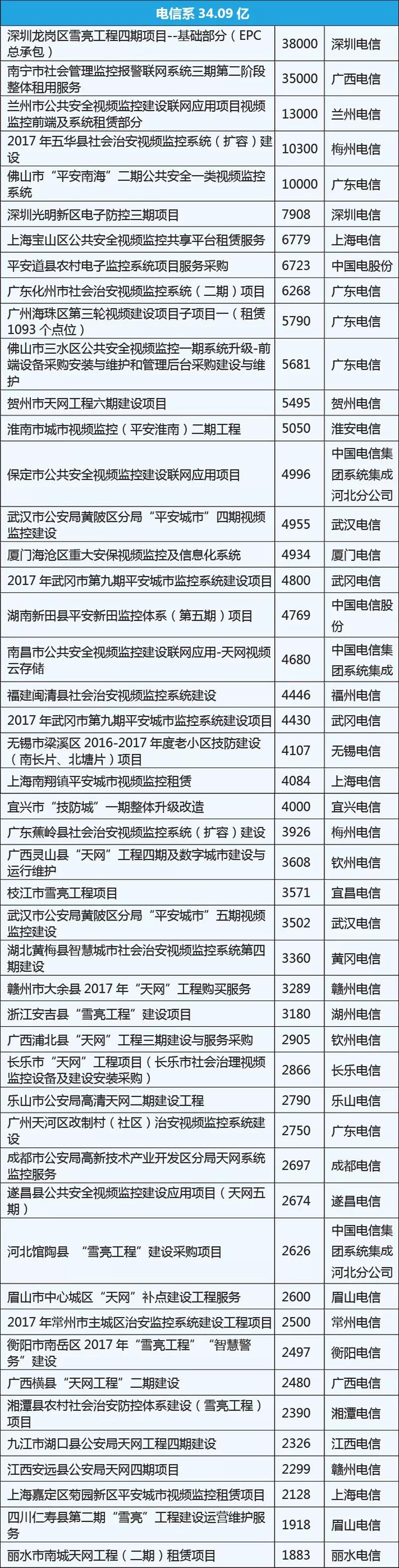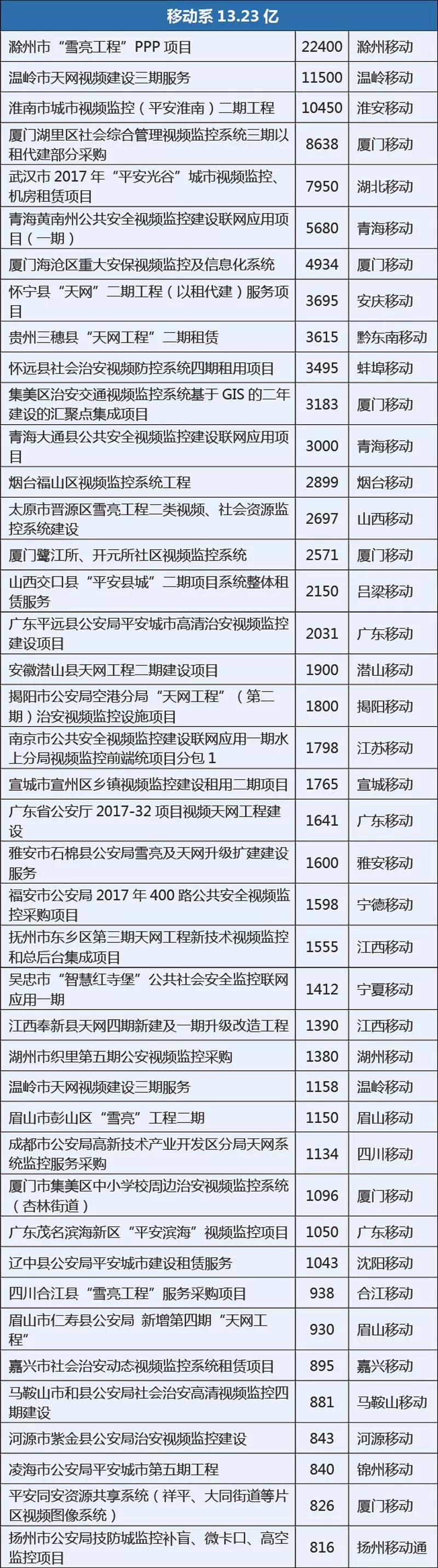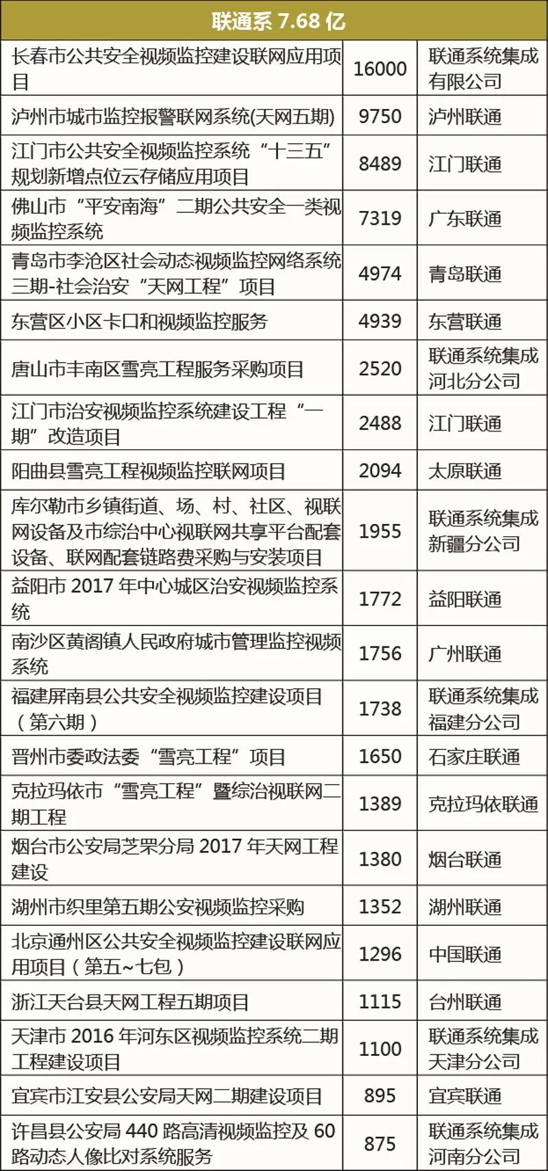 (注:本次數(shù)據(jù)統(tǒng)計口徑為大于800萬的安防市場項(xiàng)目,為了計算方便,聯(lián)合體中標(biāo)的項(xiàng)目金額平分,如有謬誤,敬請諒解。)